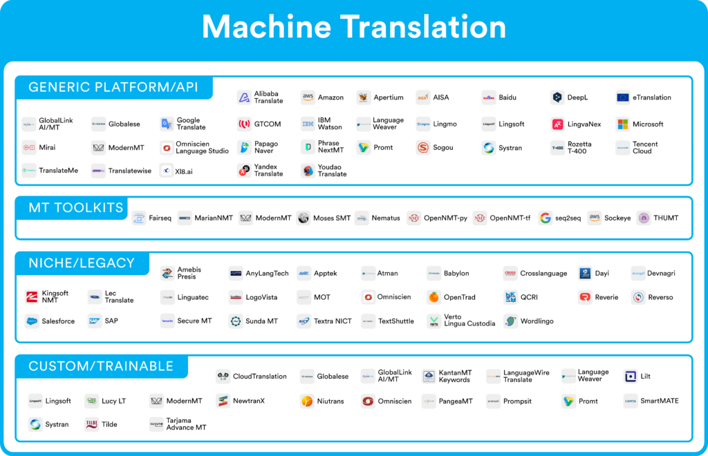 A continuación te mostramos una gráfica con algunas plataformas de traducción automática que podemos encontrar en el mercado: