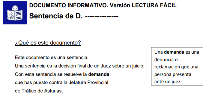En 2019, en Asturias, se redactó por primera vez una sentencia contencioso-administrativa en lectura fácil. ¡Haz clic sobre la imagen para acceder a la sentencia completa!